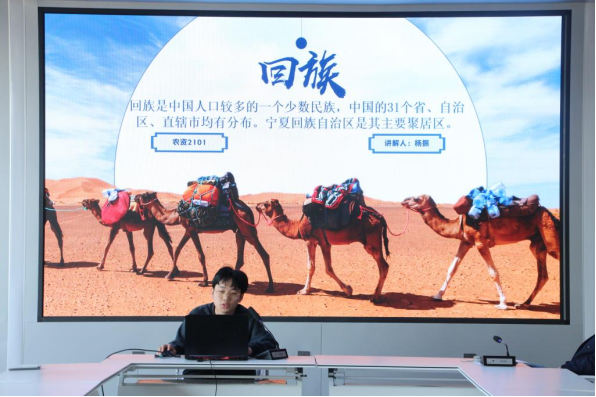 交流会上,22级维吾尔族员工木沙朗·伊明从新疆伊犁的薰衣草园到伊犁河,介绍了家乡的风景美食;来自贵州的布依族员工孙常超介绍了布依族的美丽传说、布依族的蜡染工艺和布依族音乐;回族员工杨振介绍了本民族饮食文化与传统节日;博士满族员工管芮用诙谐幽默的东北方言“啵棱盖儿”引申到满族语言,满族旗袍服饰的演变,从小窝窝头、满族火锅到骑射文化、满族的八大姓氏,生动形象,引人入胜。与会同学纷纷介绍自己的民族文化,讲述着家乡在党的领导下的发展与变化。