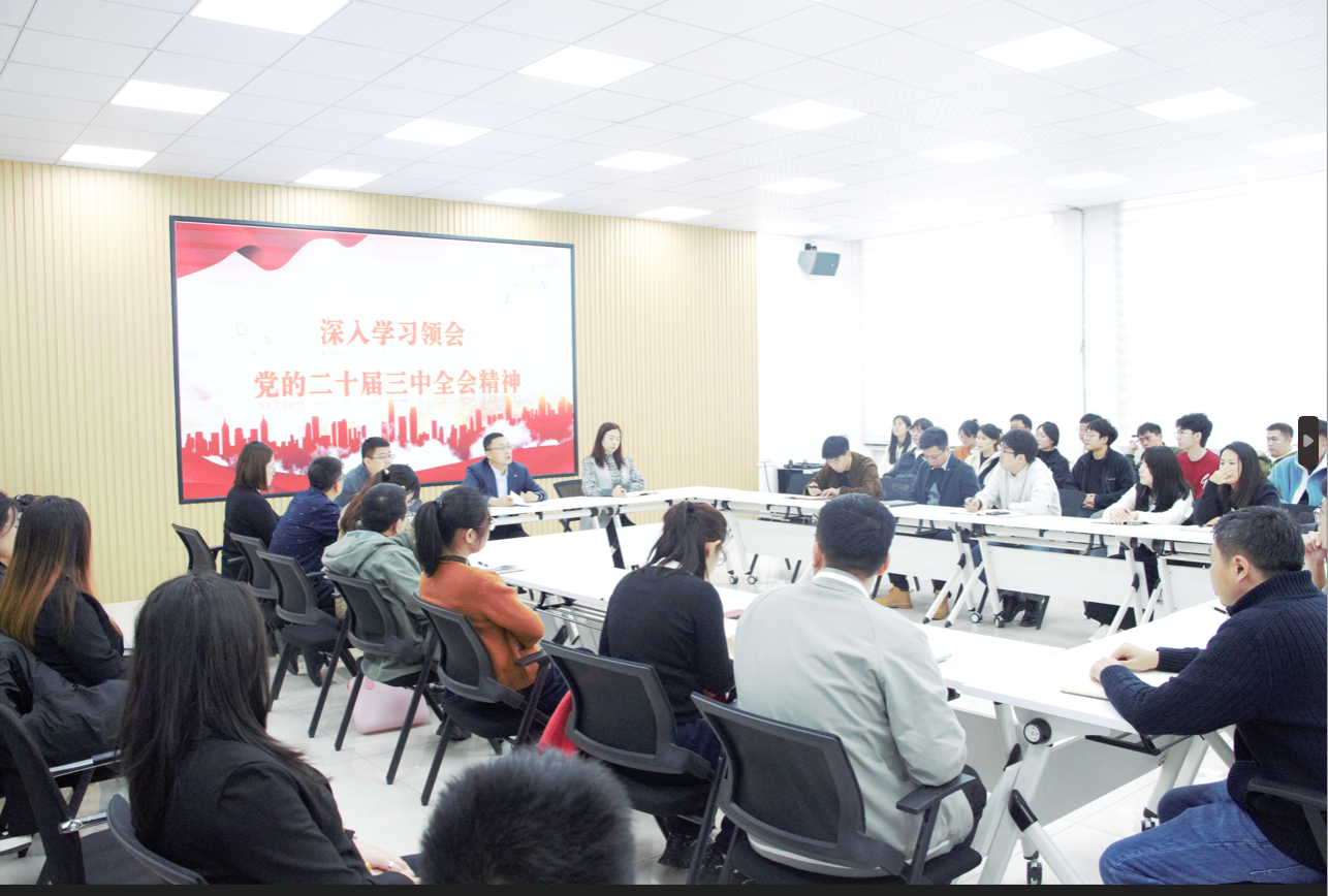 为深入学习贯彻党的二十届三中全会精神,进一步准确理解和深刻把握全会精神实质,引导公司师生切实把思想和行动统一到全会精神上来。10月23日中午,公司党委书记刘刹作专题宣讲,公司党委副书记许辉、副处级辅导员张李滨、全体教师党支部书记及支部委员、员工党支部书记、员工党员代表聆听宣讲报告。