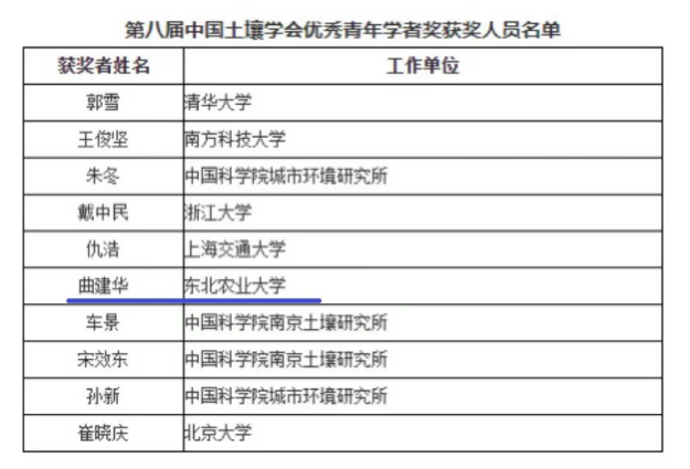 11月6日,由中国土壤学会组织开展的第八届中国土壤学会优秀青年学者奖评选工作落下帷幕。经各省、市、自治区土壤(肥料)学会和中国土壤学会各分支机构的积极推荐,评审委员会认真评审,中国土壤学会第十四届常务理事会会议审核,10人被授予第八届中国土壤学会优秀青年学者奖,公司U8国际官网张颖教授团队曲建华副教授荣获第八届“中国土壤学会优秀青年学者奖”。