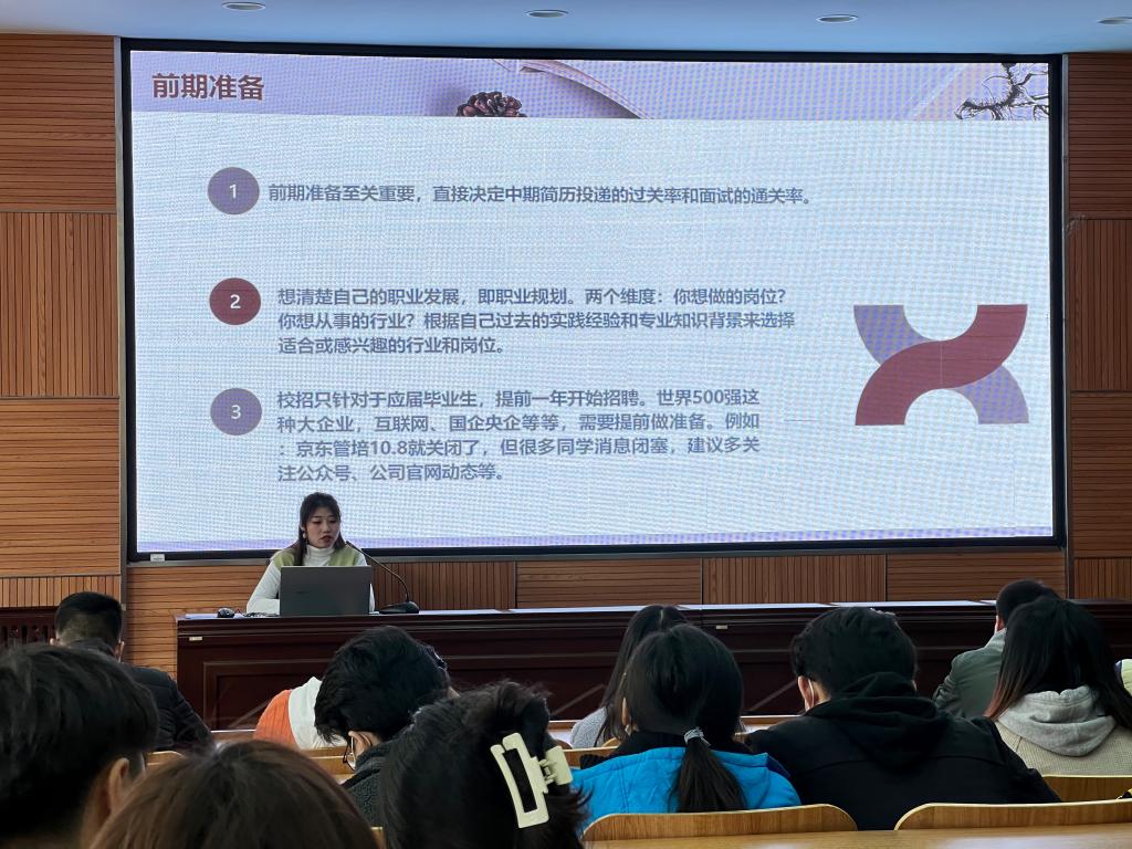 9月6日,研究生辅导员李水童向毕业生分析了公司近年来的就业升学情况及未来就业趋势,鼓励同学们拓展多渠道就业平台,指导毕业生从个人角度出发,正确认识自身情况,一方面提升自身职业素养,一方面做好职业生涯规划,同时结合大量过往毕业生就业实例,向大家分享了如何把握好时间节点,准备有针对性的就业材料以应对复杂的就业环境。