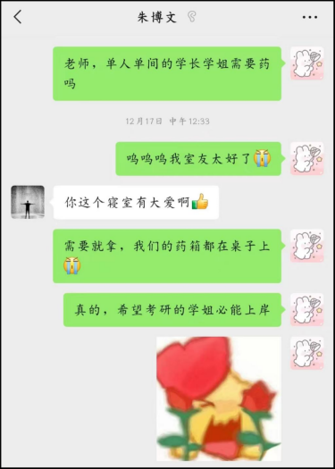 原寝室员工与健康监测员工和辅导员的温暖对话