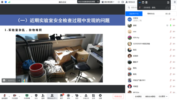 一是总结近期实验室安全检查过程中发现的问题。姜昭副经理结合公司实际情况,对实验室卫生等7方面进行总结。同时,对公司下一步重点检查内容作出详细介绍。并督促各实验室负责人加强每日防火安全检查、消防安全检查及实验室安全检查等工作,告诫师生们要严格遵守使用实验室的相关规则,并培养和完备自身的实验室安全意识和素养。