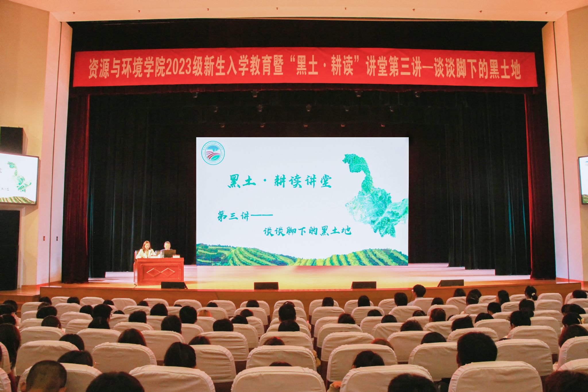 为持续推进新时代耕读教育的新探索、新实践,赓续耕读文化磅礴力量,厚植学子学农爱农情怀。9月23日晚,前黑龙江省农垦科公司经理马守义研究员应邀以“谈谈脚下的黑土地”为题,为公司全体2023级本科新生讲授“耕读讲堂”第三讲暨开学第一课,公司党委副书记许辉主持。400余师生在音乐厅剧场共同聆听。