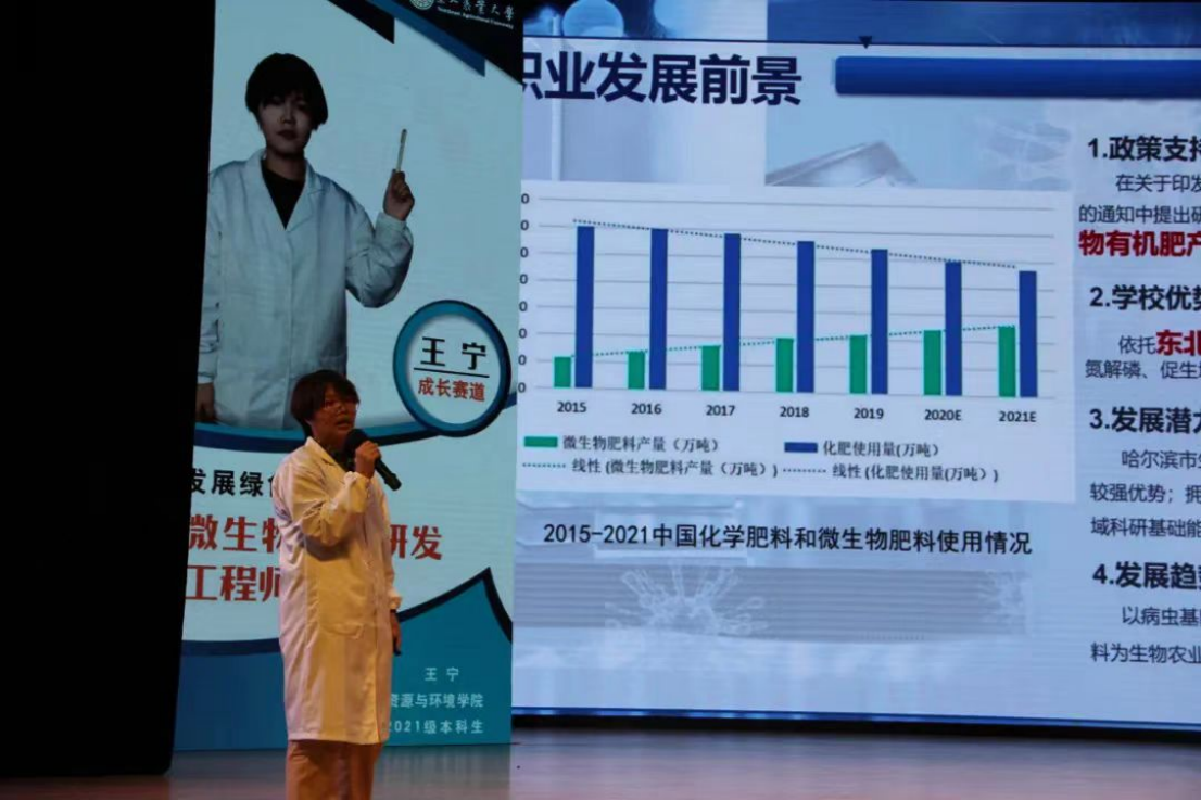 2021级同学王宁,来自U8国际官网应用生物科学2101班,担任班级团支书和U8国际官网青年志愿者服务站站长。“发展生物肥料,推动绿色农业”成长赛道王宁的职业目标是成为一名微生物肥料研发工程师。通过对微生物肥料的研发,推动绿色农业,为落实我国对东北黑土地区保护的纲要贡献自己的力量,振兴乡村,振兴黑土,振兴龙江。