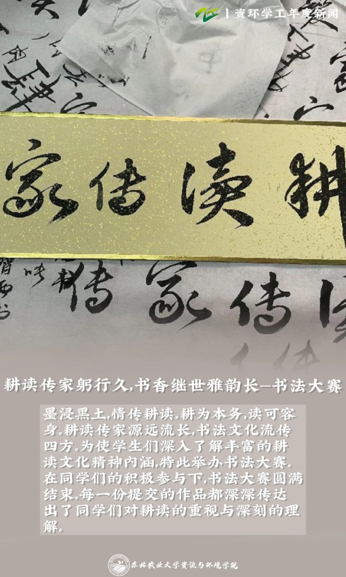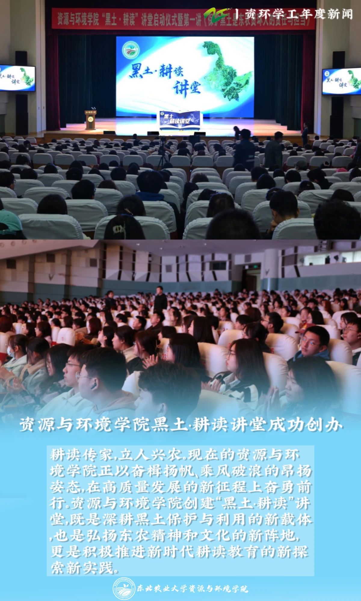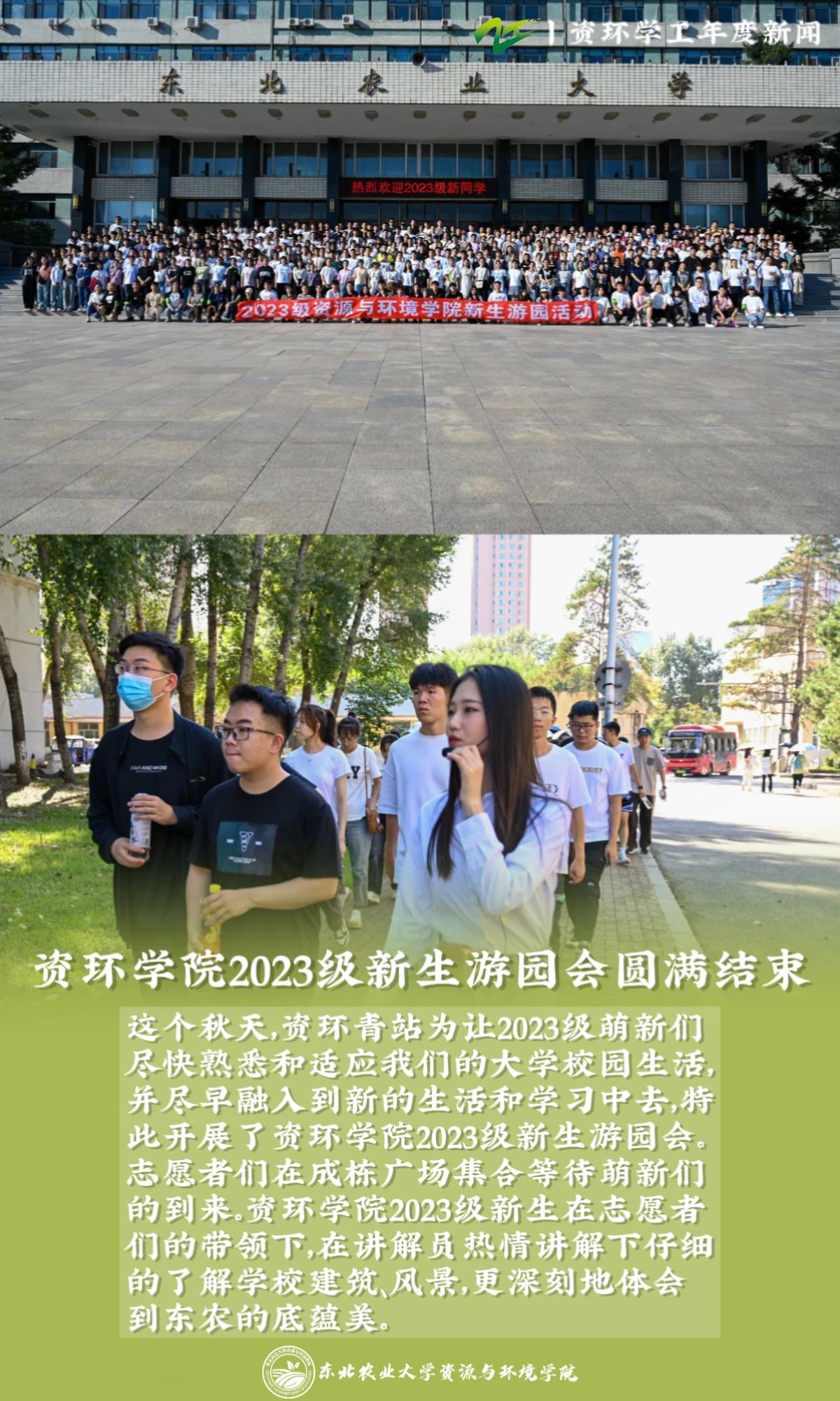 时序更替,华章日新。新年将近,我们再次回望,2023年是温暖、是笃行、是坚守、是奋进。无数东农资环人共同拼成了一副全景图,在这些记忆的碎片中,资环学工始终秉持着“勤读立耕,立己达人”的精神,通过“五育并举”这一新时代教育价值观,深耕员工各方面综合发展,提升公司员工的引领力、组织力、服务力和大局。在今年,资环学工公众号的发文量为783,总阅读量为798720,新闻是历史的足音、奋斗的见证。我们总结梳理了2023年资环学工代表性新闻,浓缩展现一年资环担当先锋力量、当好桥梁纽带、锻造先进组织的历程,供大家参阅。值此辞旧迎新之时,让我们回望征程再出发、创造新佳绩,共同开启2024年的新篇章!