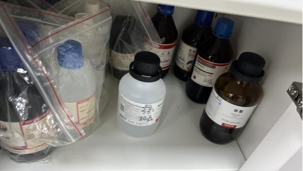 1. 易制毒、易制爆化学品存放较多(易制毒化学品建议安装监控、双人双锁并有出入库台账可每种化学品存放不超过1瓶;易制爆必须坚持用多少取多少的原则,取回后尽快配置成溶液贴好自配试剂标签储存。) |