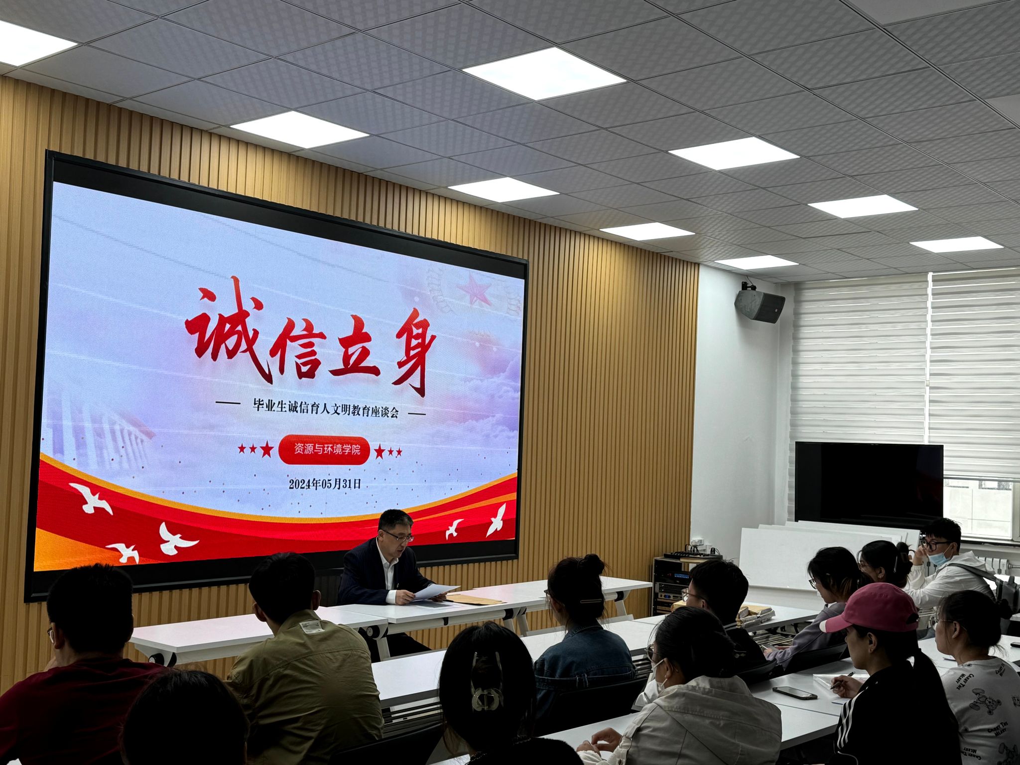 6月5日,在全党开展党纪学习教育的重要时期,毕业班辅导员韩亮以“诚信立身担使命,自律笃行做表率”为主题,为毕业生党员讲授“最后一堂党课”,加强毕业生学术诚信、就业诚信教育,引导毕业生离校期间文明有序、爱护公共财物,结合“助学·铸人·筑梦”资助育人文化节活动,做好员工诚信还款工作,引导毕业生党员学纪、知纪、明纪、守纪,永葆共产党员的纯洁性。