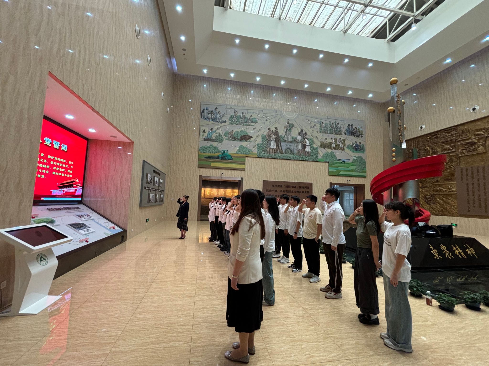 6月20日,在毕业生党员离校前,公司组织毕业生党员走进校史馆参观,公司党委副书记许辉带领全体毕业生党员们重温入党誓词,以“重温入党誓词”为在校期间最后一节党课的形式,助力毕业生党员回忆入党初心,加强纪律意识,用党的光辉照亮前路,用东农精神助力前行。在生动的校史照片和珍贵的校史展品中,毕业生党员又一次感悟着东农人“艰苦奋斗、自强不息”的磅礴力量。