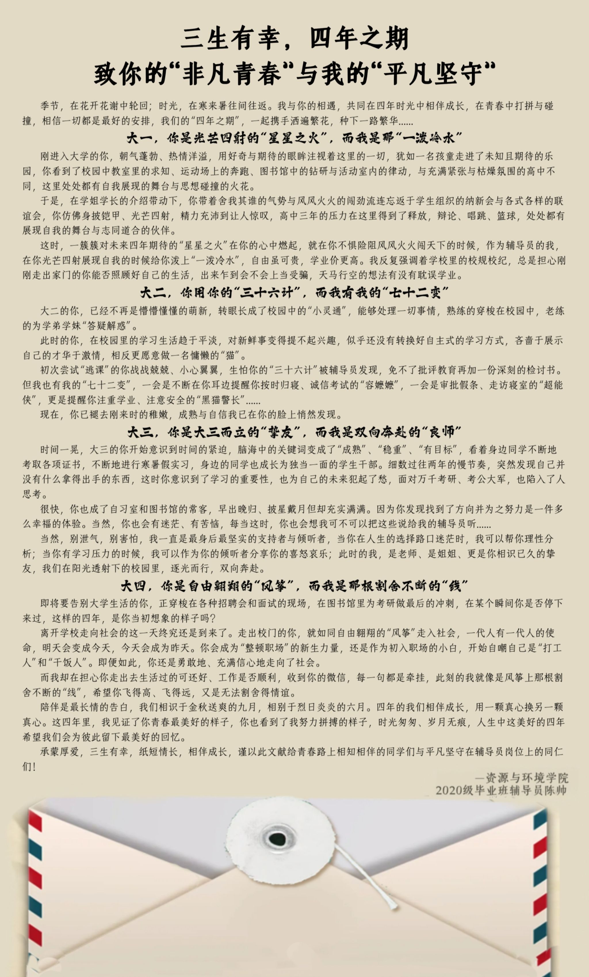 毕业班辅导员撰写毕业书信