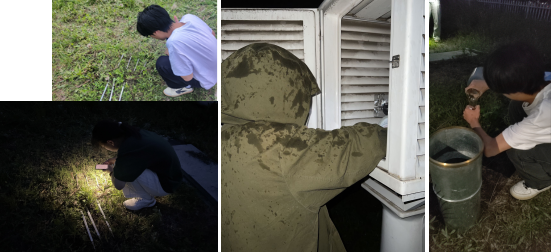从气象局返回公司后第二天起,同学们又在校园北区气象站完成5天(6月18-22日)的地面观测实习内容。校内地面观测实习分组进行,每天完成6个时间段内的观测任务,主要包括百叶箱内干湿球温度表和最高最低温度表、风向风速、土壤温度、降水量、蒸发量、太阳总辐射、云量、云种、能见度等内容。并通过观测数据进行整理分析、绘图完成实习报告的撰写。