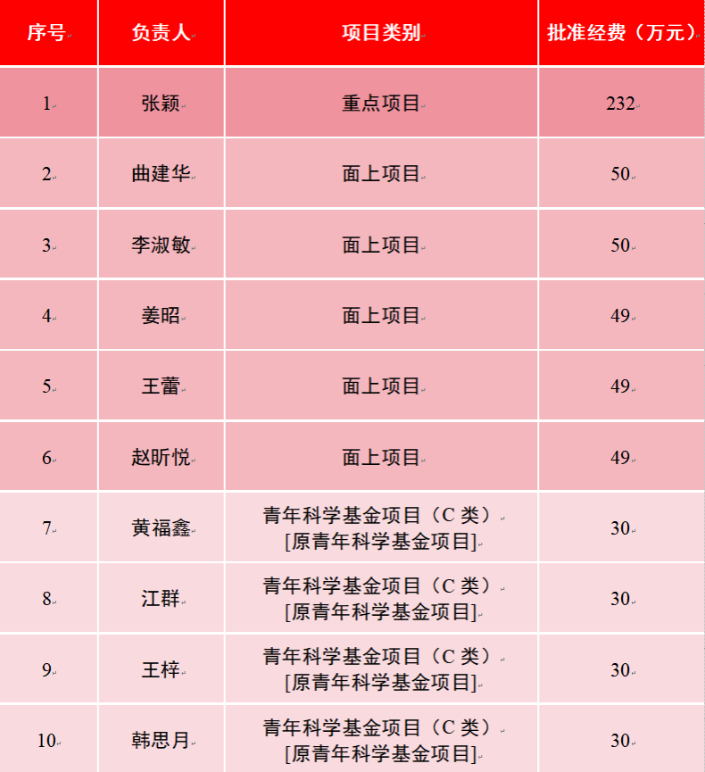 近日,2025年度国家自然科学基金项目立项结果正式公布。在全院教师的共同努力下,公司共获资助项目10项,同比去年增长233.3%,立项数量创历史新高,位列全校第二;资助率达20.4%,获批总经费599万元。其中,张颖教授获批重点项目(资助经费232万元),实现了公司在该类项目上零的突破,充分体现了公司在黑土保护与绿色生态农业等前沿领域的扎实基础和科研实力。