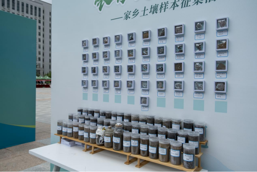 新生从各地携带的土壤样本布满展架