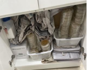 1. 药品与玻璃器皿、鞋盒混合摆放 2. 存在不明液体 |