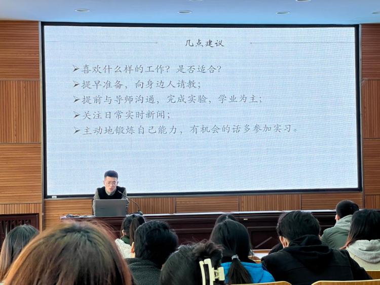 9月6日,研究生辅导员李水童向毕业生分析了公司近年来的就业升学情况及未来就业趋势,鼓励同学们拓展多渠道就业平台,指导毕业生从个人角度出发,正确认识自身情况,一方面提升自身职业素养,一方面做好职业生涯规划,同时结合大量过往毕业生就业实例,向大家分享了如何把握好时间节点,准备有针对性的就业材料以应对复杂的就业环境。