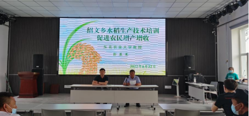 2022622日,彭显龙教授联合黑龙江省农机化技术推广总站农业推广研究员刘波到富裕县绍文乡开展水稻生产技术培训会,对水稻生产中农机农艺问题进行培训培训后深入田间地头对穗肥施用时期进行实际指导,使农户精准掌握穗肥施用时期,避免因施用时期与用量不合理导致的水稻减产。