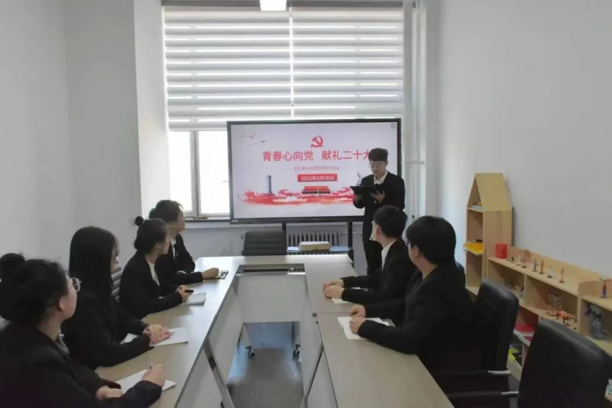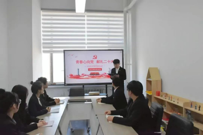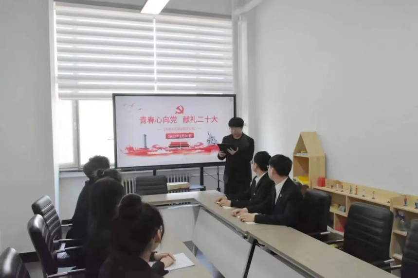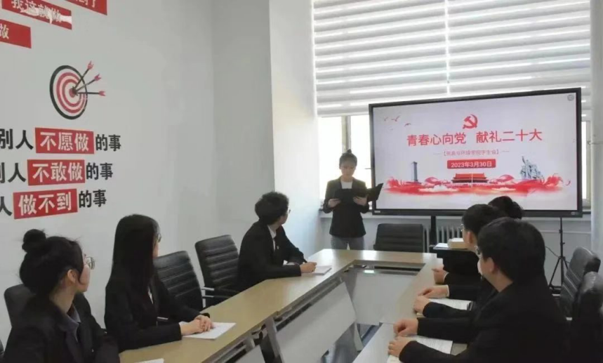 员工会监察调研部部长郝春悦在会议上说到:当青春遇上“二十大”,中国青年奋进之姿态耀眼于整个历史长河:中国青年前赴后继、冲锋陷阵;中国青年自力更生、艰苦创业;中国青年勇立潮头、锐意创新;而今迈向新时代,中国青年不忘初心、牢记使命。正是一代又一代的中国青年以青春之奋进追求民族独立和人民解放,追求国家富强和民族振兴,中国共产党才能欣欣向荣,永葆生机。新时代的中国青年,当毅然决然扛起大梁,勇于攀登、砥砺前行,在经风雨、见世面中长才干、壮筋骨,练就铁脊梁、真本事,以金刚不坏之身应对一切艰难险阻,以奋楫勇毅之姿抵挡一切惊涛骇浪。