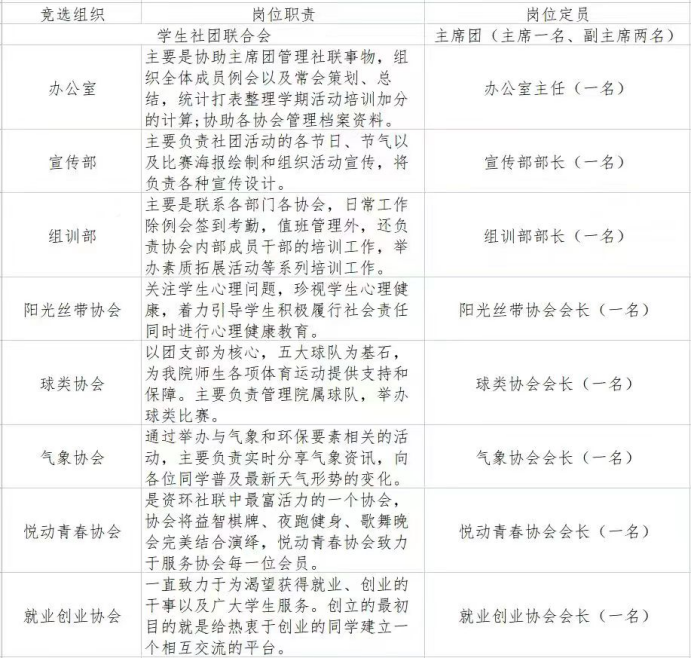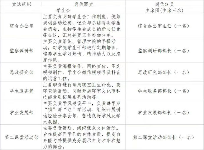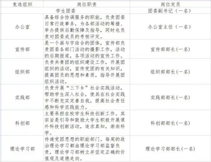 竞选岗位及职责