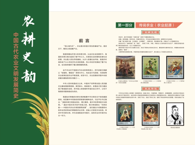 该展示区将以时间为脉络详细介绍中国农业发展史,通过展板介绍的方式梳理中国历史进程中在农业发展上取得的突出成就,让员工了解农耕文化,坚定学农爱农信念。