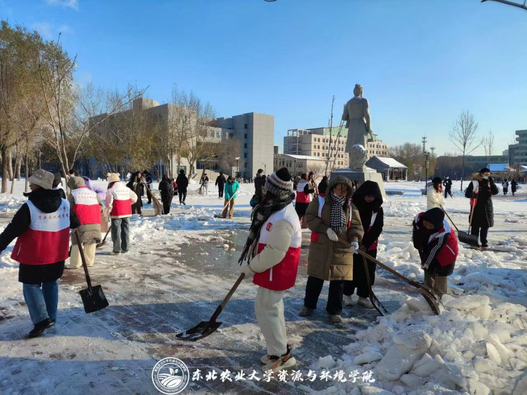天冷路滑,奋保通行。雪寒人心暖,齐力可断金。同学共力开小径,机械神威通衢出。全校战冰斗雪,将冰雪覆盖的校园,开出条条道路,以保障师生出行安全。