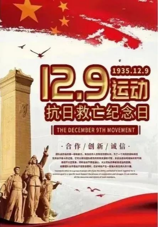 正如毛泽东同志所指出的,一二·九运动是动员全民族抗战的运动!而我们作为新时代的青年老员工,也要用自己的方式来缅怀先辈,传承他们心忧天下的精神,用铿锵有力的海报缅怀历史,以坚定不移的信念展望未来!