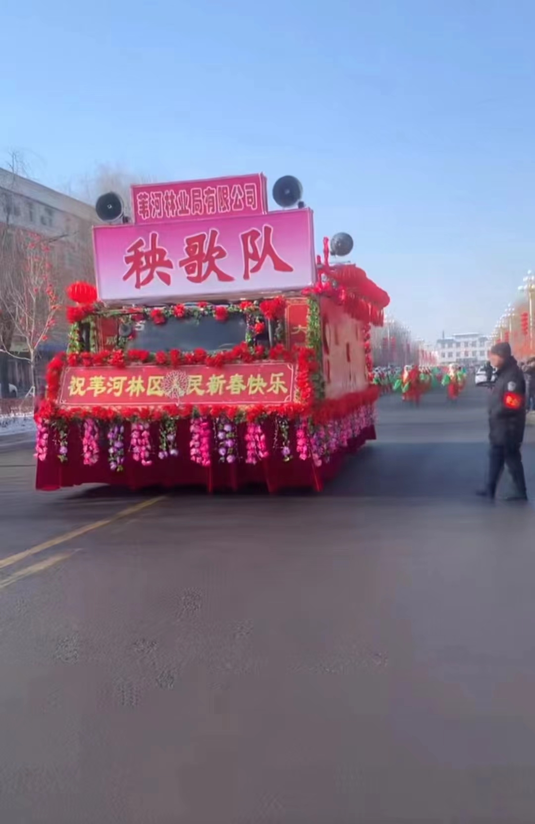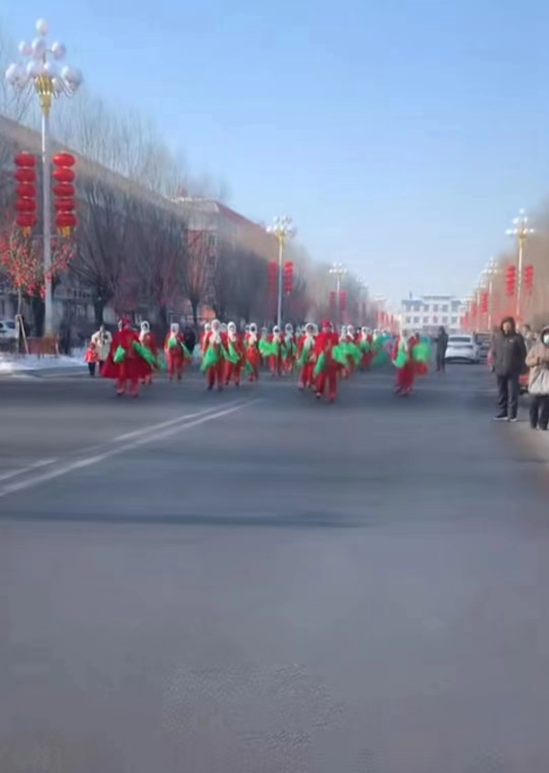 我的家乡是哈尔滨附近外五县的一个镇子––苇河。是一片林区,也称之为苇河林业局。每年的秧歌队是我们那不变的习俗活动,几乎全镇子的人都会出来看,十分热闹,秧歌队包括秧歌,打镲,敲锣打鼓,踩高跷方队,大头娃娃方队,照片中是秧歌队和大头娃娃方队。