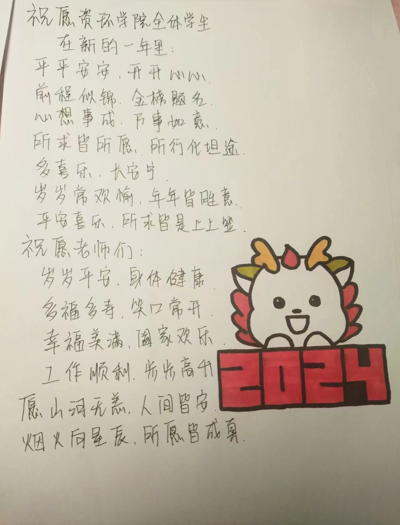本次“嘉年逢盛世,祥龙报春来”龙年春节主题系列活动在同学们的积极参与下拉下帷幕,下面让我们一起看看同学们的新年祝福,感受别样年味。