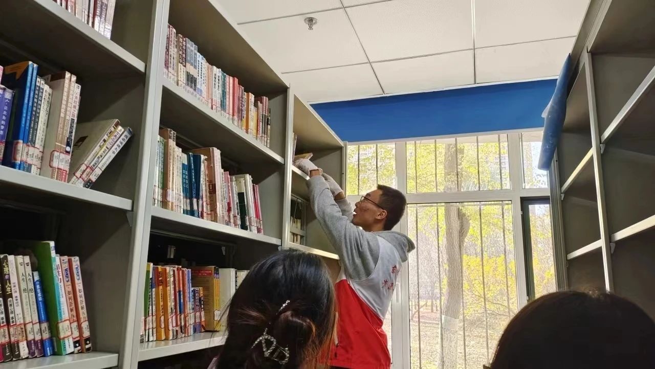 4、志愿者们按规定时间到图书馆指定活动地点集合,领取志愿者服装后按照分工开展志愿活动。