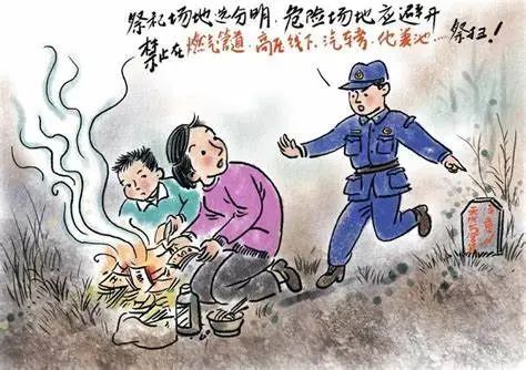 如果需要焚烧纸钱,务必在指定区域内进行,并注意看守火源直至完全熄灭。