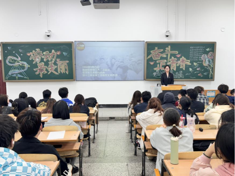 农科、生态的主持人准备了精美的板报,以播放PPT的形式,让大家将个人奋斗与国家繁荣紧密相连,树立正确的人生观、价值观和世界观。在新时代的征程中,青年一代应敢于担当,积极投身于经济建设、科技创新、文化繁荣等各个领域,为国家的繁荣昌盛添砖加瓦。