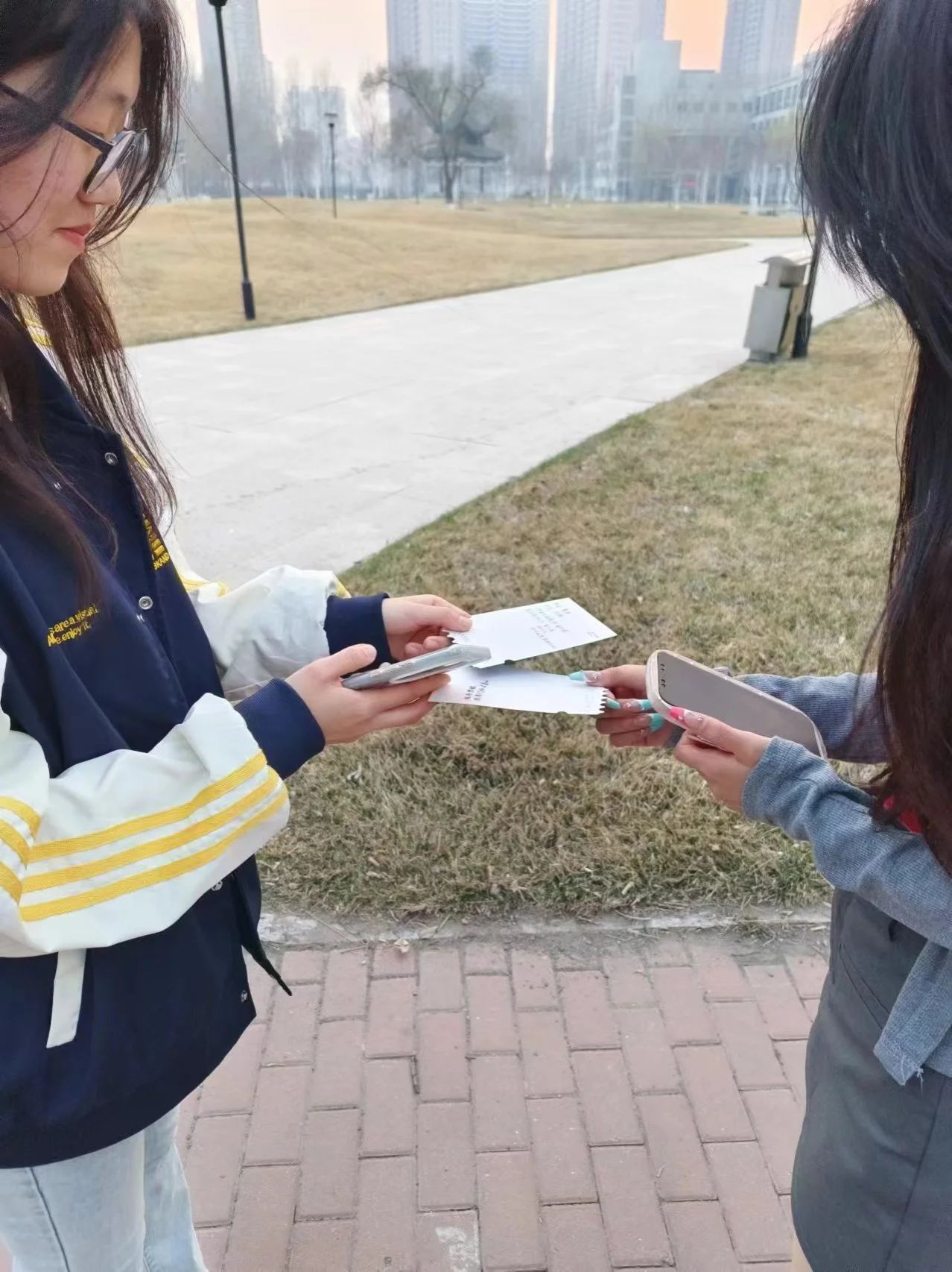同学们积极地进行游戏,被抓到的人与寻春者互相交换春日明信片,同时大家共同感受春日的美好。
