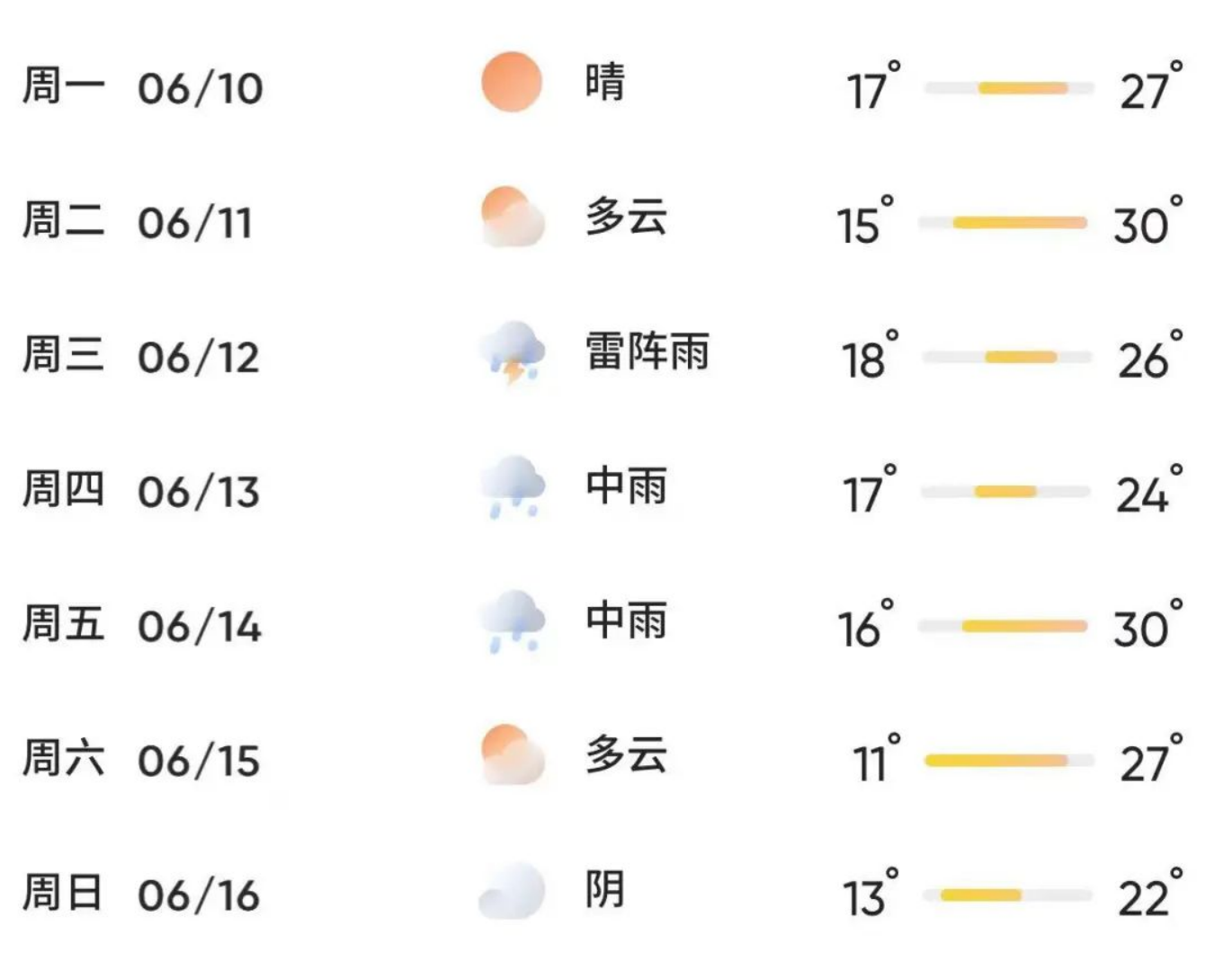 下周天气预报