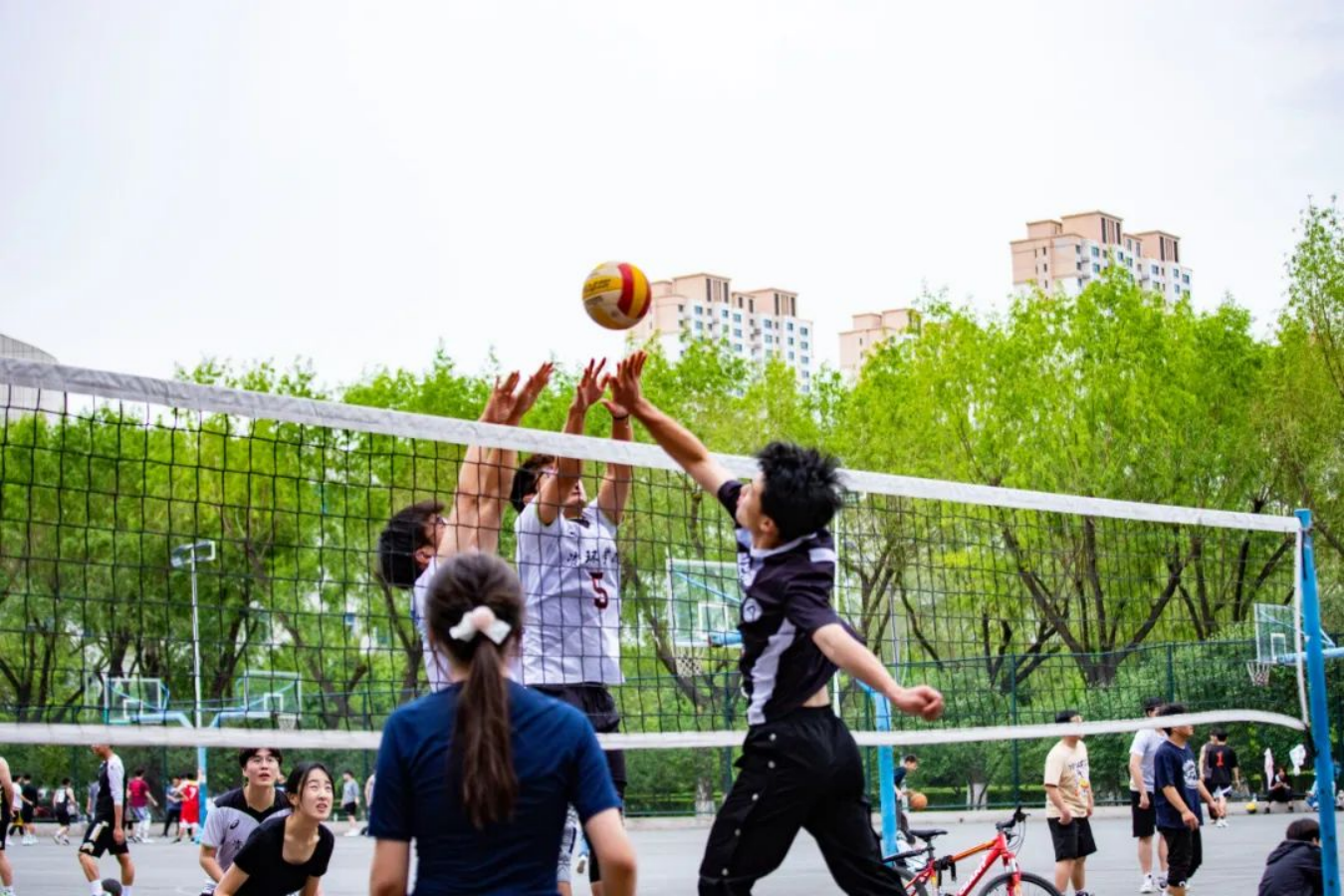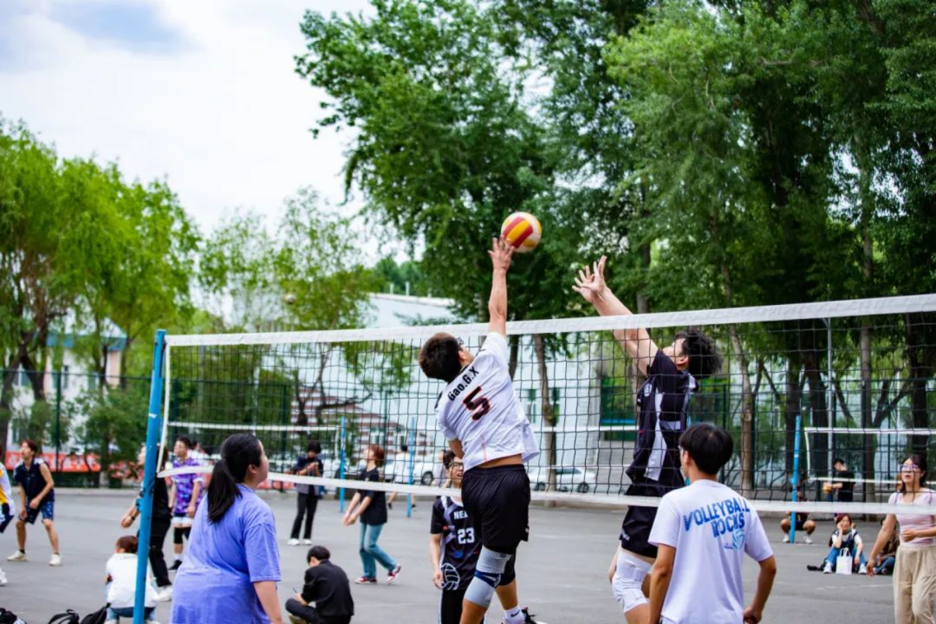 矫健的身姿,强悍的实力,无论是新人亦或是学长,都表现了自己最佳的水平,排球呼啸而过,搅动青春时光。他们将学会团结、学会拼搏、学会永不言败,我们用掌声和欢呼声为球员们加油助威。让我们在这片充满激情的赛场上,共同书写属于我们的青春篇章!