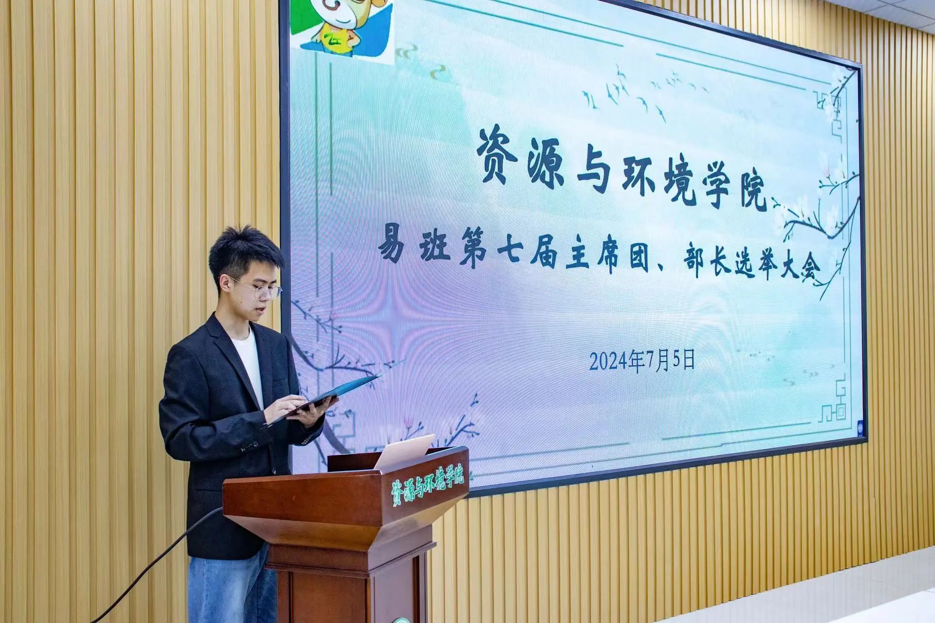 最后,指导教师王昊对本次大会作总结讲话。他首先对各组织机构在公司发展建设中所付出的努力给予高度赞许和衷心感谢,并对新一届员工干部提出三点希望:一是锤炼高尚品格,加强思想建设,辩证认识自身使命,把握好正确方向以及自身特点,做好理性服务与深度引领;二是继承优良作风,传承守正创新,完善内部建设,赓续创新理念,讲好件件资环故事,发出铮铮青年之音;三是赓续服务初心,发挥榜样作用,弘扬新风正气,始终保持“为青年发声,向外界呐喊”的初心与使命,致力于打造极具影响力的校园媒体。