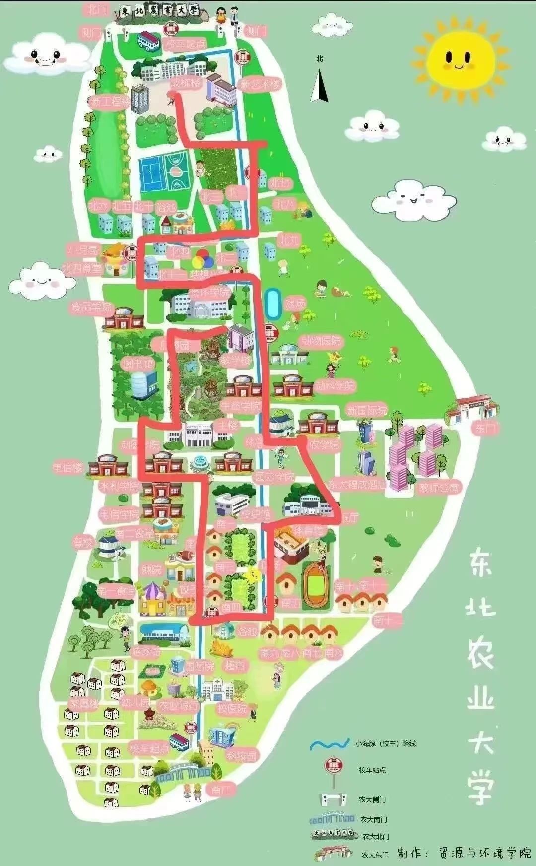 志愿者们在成栋广场集合等待萌新们的到来。资环公司2024级新生在志愿者们的带领下,先后游览了成栋楼,北区公寓,北三、北四食堂,梦想小镇,教学楼,各个公司楼,主楼,音乐厅,体育馆,校史馆,南区公寓,南一食堂,饺子园,棘园,图书馆 ,后稷园,最后到了资环公司。一路上,讲解员热情讲解各个建筑并且回答同学们的疑问,解答困惑。这一路同学们不仅了解了公司建筑、风景,更深刻地体会到东农的底蕴美。