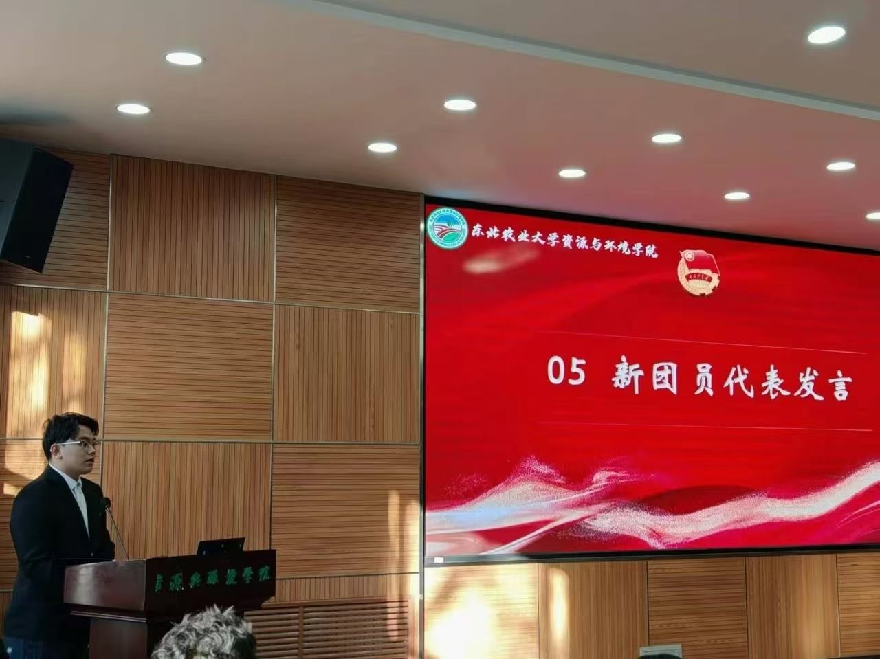 新团员代表王禹博同学进行发言,表达了对共青团组织的热爱和对未来的憧憬。