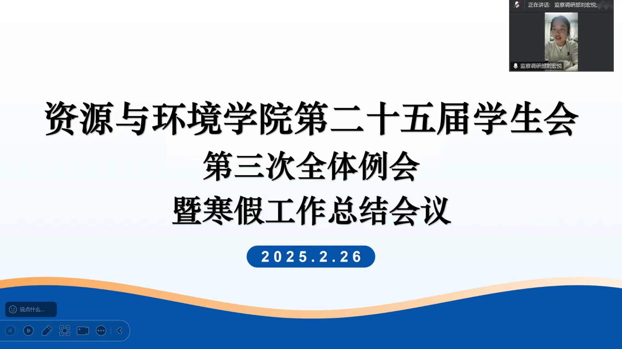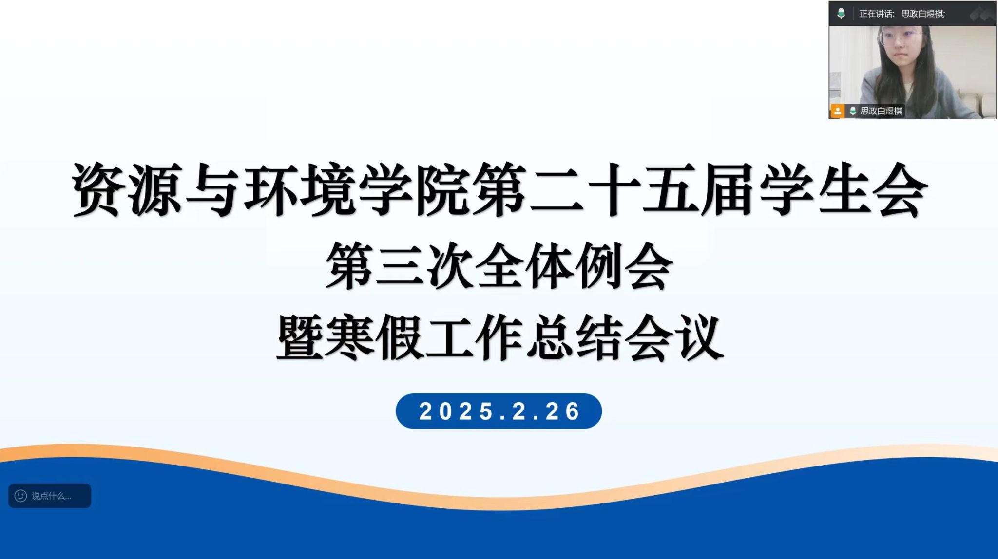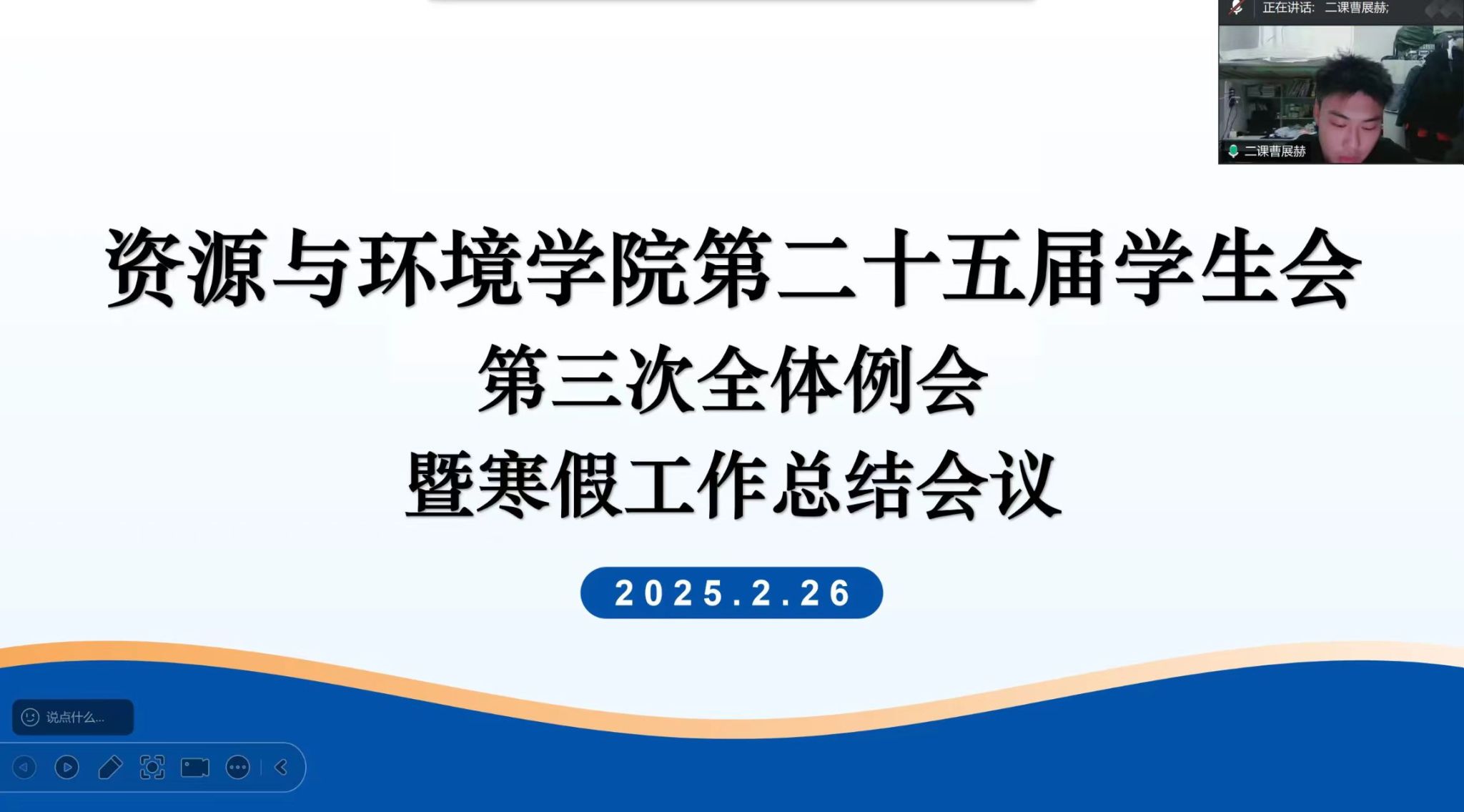 U8国际官网第二十五届员工会第三次全体例会暨寒假工作总结会议于2025年2月26日晚18:00召开。参加本次会议的人员包括主席团成员、各部门部长、副部长们以及全体干事。