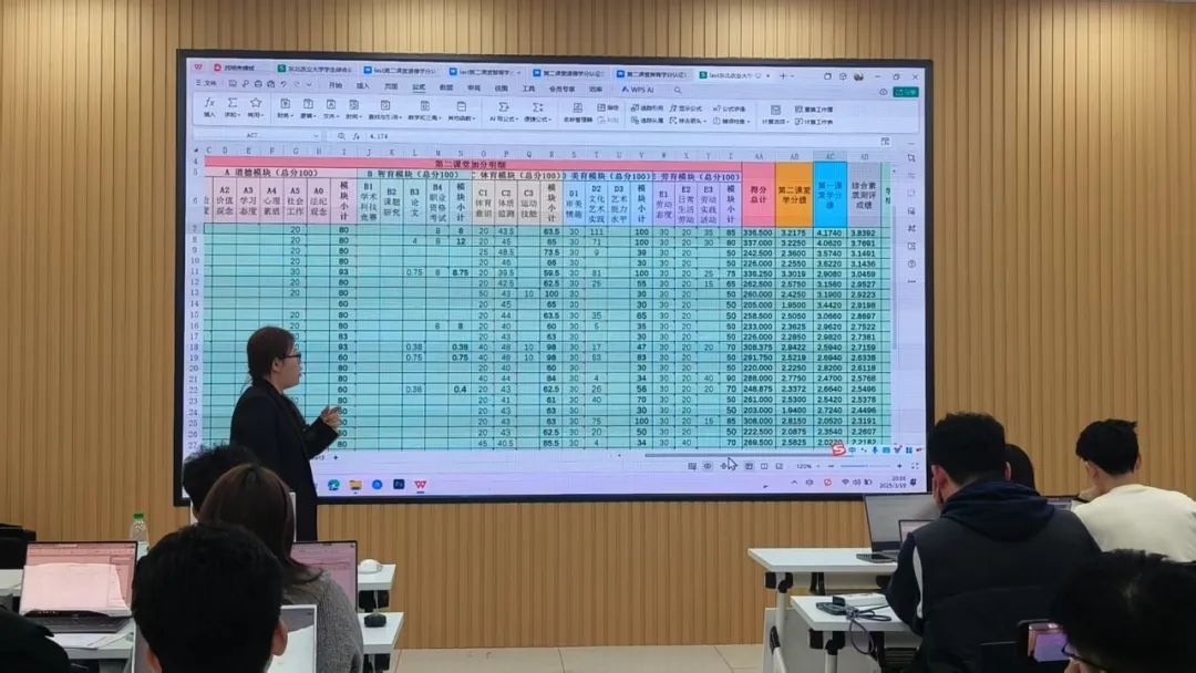 讲解结束后,主讲人及学业发展部成员引导同学们用自己的电脑进行实际操作,独立完成自己的综合素质测评计算,同时提出操作过程中遇到的问题。互动答疑环节,同学们踊跃提问,氛围热烈。问题集中在成绩与德育加分细则,比如成绩换算细节、社团活动组织在德育表现中的评定。主讲人结合实际案例耐心解答,如用具体成绩代入公式演示计算过程,讲述大型社团活动组织中不同角色的加分依据。一番解答后大多数同学已经可以基本掌握综评计算的方法和技巧,能够独立与班级班委协商,共同计算班级同学的综评成绩。