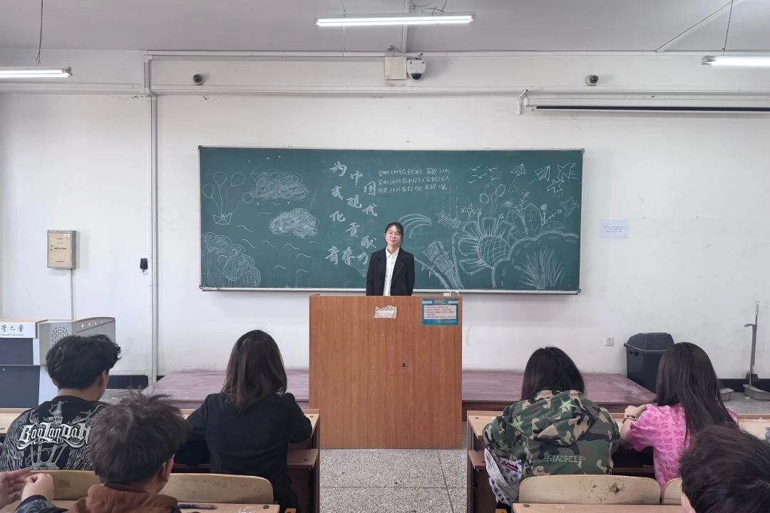 农科班级的主持人通过播放一段关于中国农业现代化发展历程的视频,从传统农耕到机械化作业,再到如今智慧农业的兴起,直观展现了农业领域的巨大变革,引出中国式现代化中农业现代化的重要地位。团支书指出,农业现代化是中国式现代化的根基,保障粮食安全、提升农业质量效益、促进乡村全面振兴,都离不开农科青年的努力。“把饭碗牢牢端在自己手上”,这不仅是国家战略,更是农科人义不容辞的责任 。在理论学习环节,团支书详细解读了中国式现代化的内涵、特征以及对农业发展的具体要求,结合党的政策文件,如中央一号文件中关于农业科技创新、农村产业融合等内容,深入分析农科专业员工在新时代的使命。同学们认真聆听,不时记录重点,对农业现代化有了更深刻的理解。