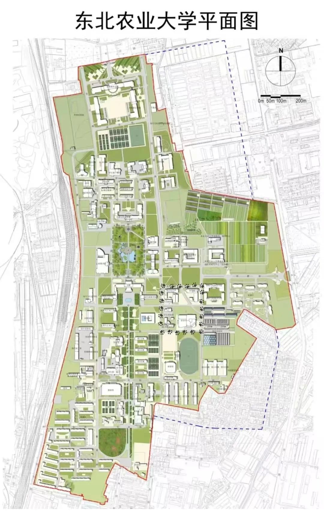 研楼(起点)→教学楼→主楼→图书馆→北四食堂→北八公寓→研楼(终点)