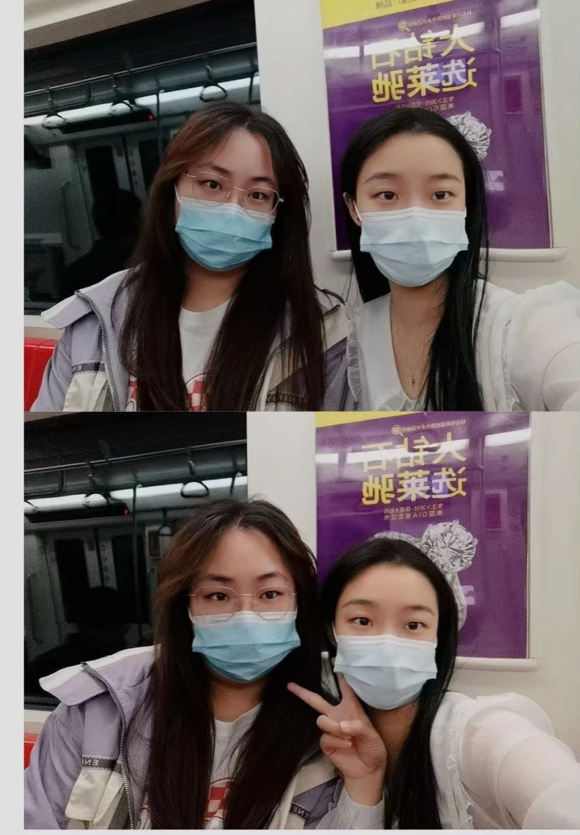我们认识多年,早已是对方生命里重要的一部分。今年清明节,我们开启了属于我们俩的第一次旅行。旅行地点选择了我们俩都很喜欢且距离适中的城市—青岛。照片一是我们俩在地铁上拍摄的,当时地铁上只有一个座位,于是我们俩只好挤在一起。但对我来说,只要跟好朋友在一起好像发生什么事都是开心的。照片二是我们在五四广场的标志物前的合照。夜晚天黑下来,我们买了一个有灯的小花。建筑物的光和小灯的光共同点亮了我们的笑容。这张照片也给我留下了深刻的印象。