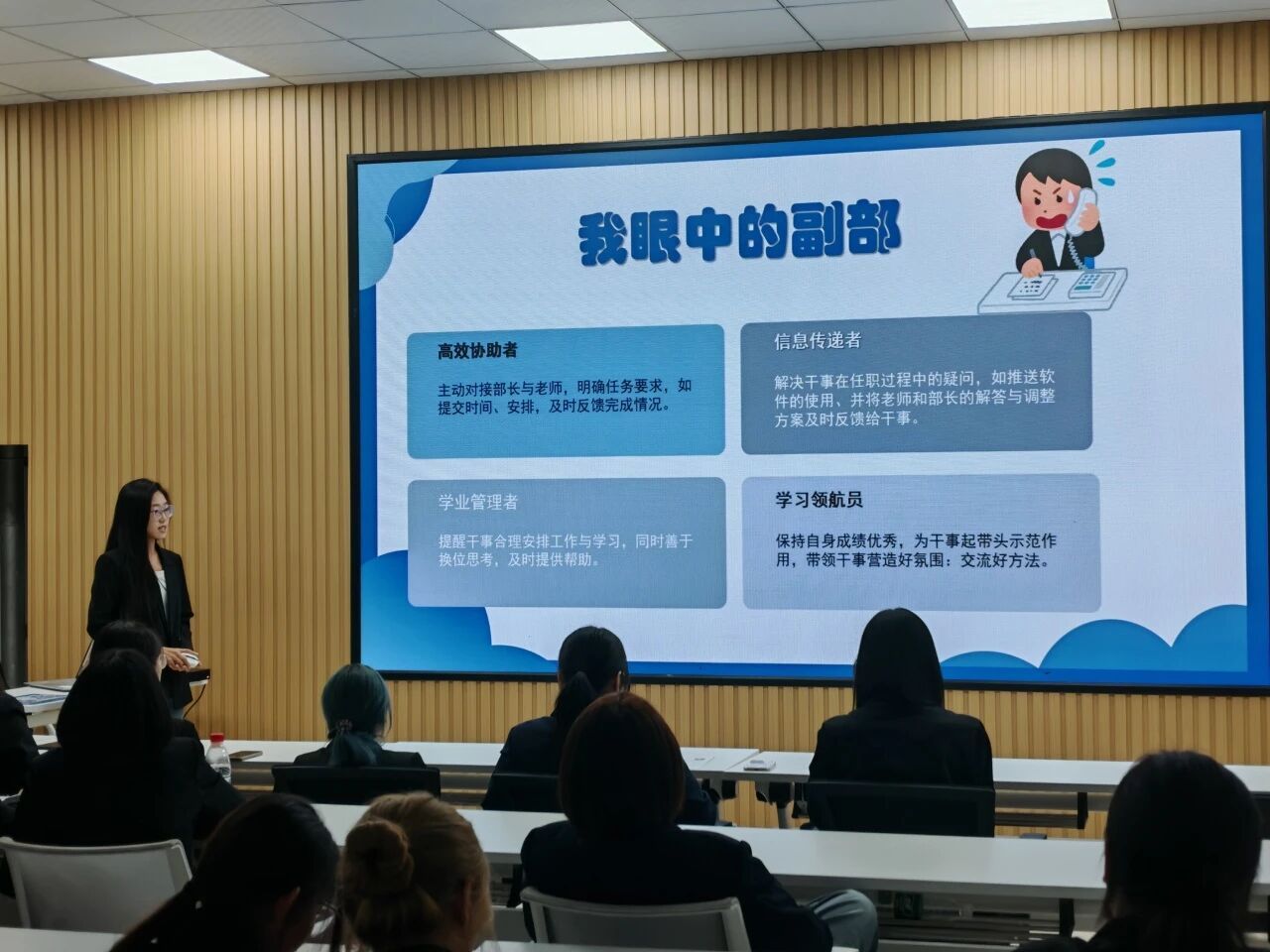 会议由运营部部长周美彤主持,易班站长,副站长,各部门部长齐聚一堂,共同见证这场关乎团队传承与发展的重要会议,在严谨有序的氛围中,各项议程逐步推进。