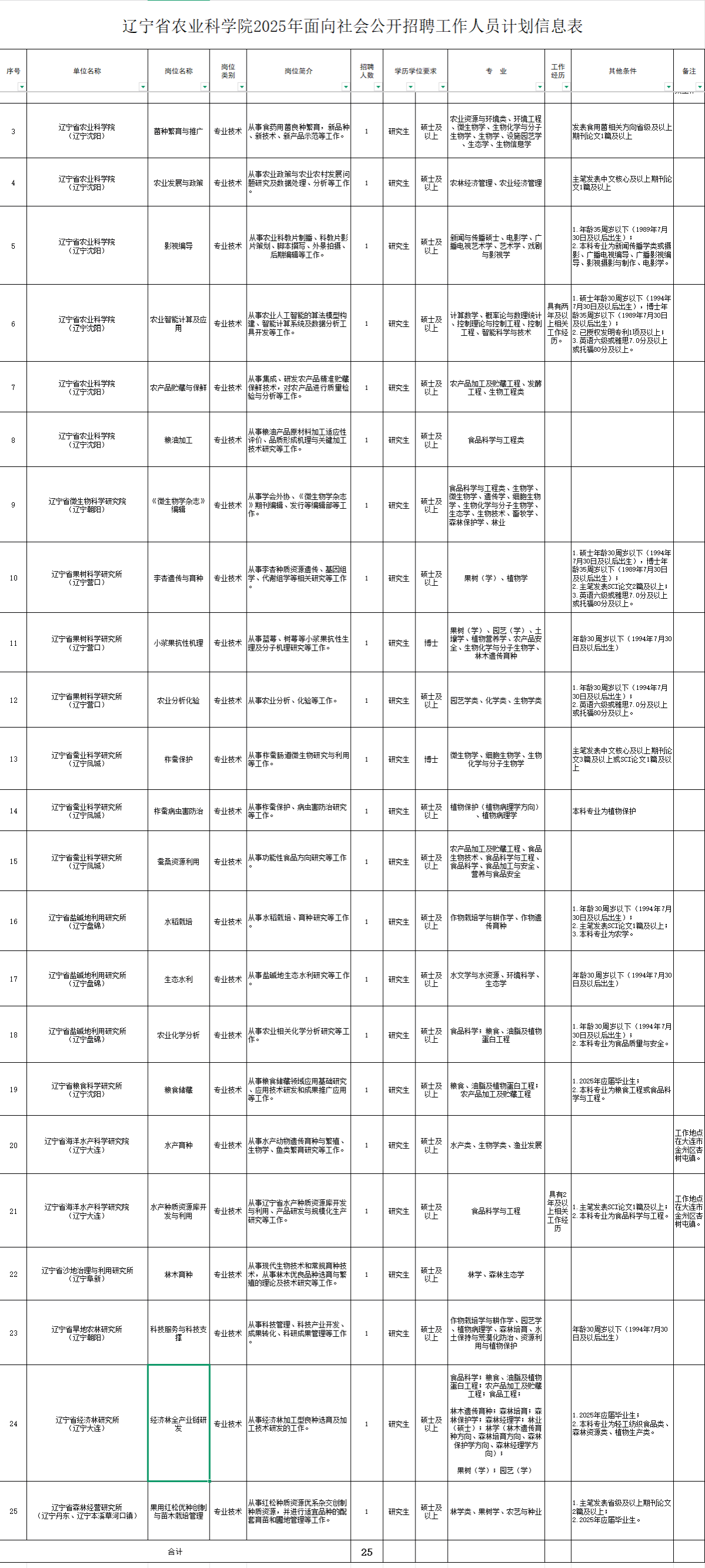 附件:辽宁省农业科公司2025年面向社会公开招聘工作人员计划信息表