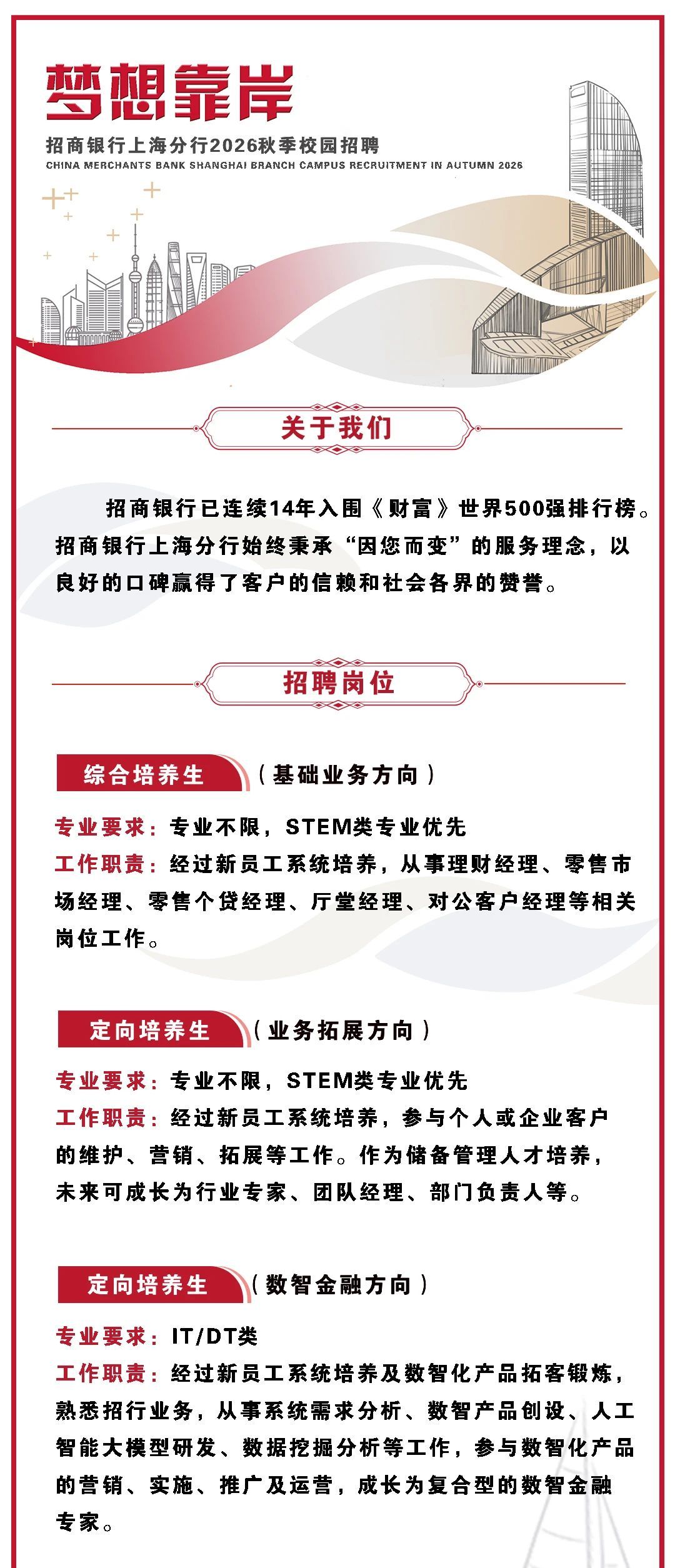 上海|“梦想靠岸”招商银行上海分行2026校园招聘